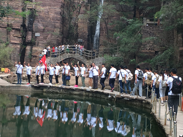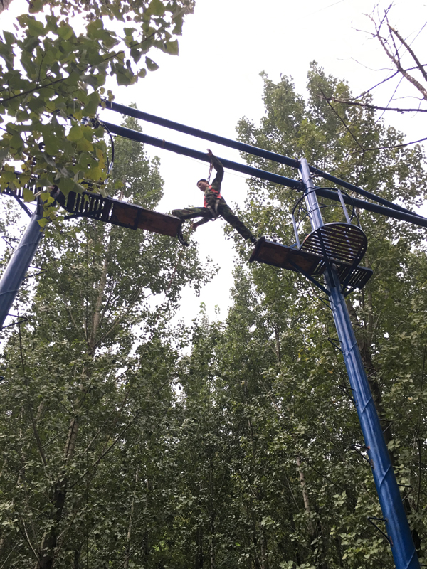 兩天的時(shí)間全體隊(duì)員不怕苦,不怕累的進(jìn)行了“高空斷橋”、“七巧板”“定向?qū)殹?、“同起同坐”以及“畢業(yè)墻”五大項(xiàng)活動(dòng),每項(xiàng)活動(dòng)都有著自己的特色,也分別刻畫著不同的寓意來(lái)激勵(lì)著我們,使我們?cè)诓粩嗟耐黄谱约旱耐瑫r(shí)看到團(tuán)隊(duì)協(xié)作的重要性。